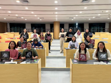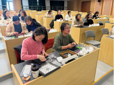 创作过程中,大家全神贯注,互相交流裁剪技巧、配珠心得,现场欢声笑语不断。当一件件精致典雅的“珍珠骏马图”完成时,女教师们手捧作品,脸上洋溢着自豪与喜悦,纷纷合影留念,定格下这份独属于巾帼女性的浪漫与巧思。